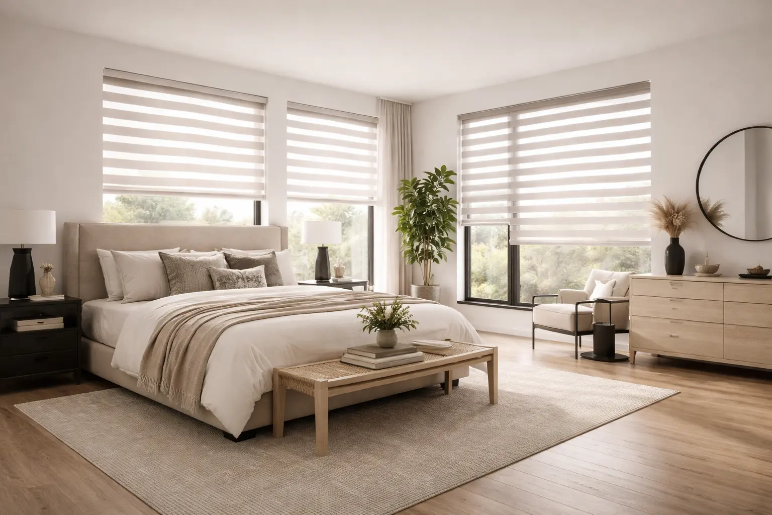 Experience the best of both worlds with our Dual Shades. Featuring two layers of fabric—one sheer and one solid—dual shades provide unparalleled flexibility. Adjust the position of the layers to achieve the perfect balance of light, privacy, and style. Whether you want to let in soft, filtered light or block out the sun completely, dual shades give you complete control over your environment without compromising on elegance.